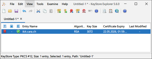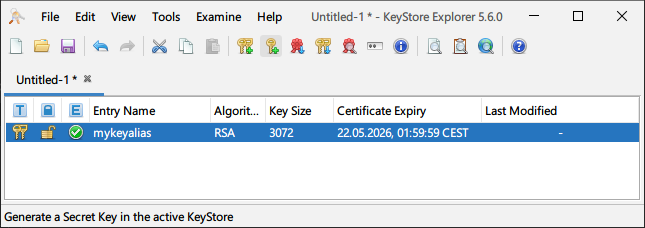 In a GUI with KeyStore Explorer: